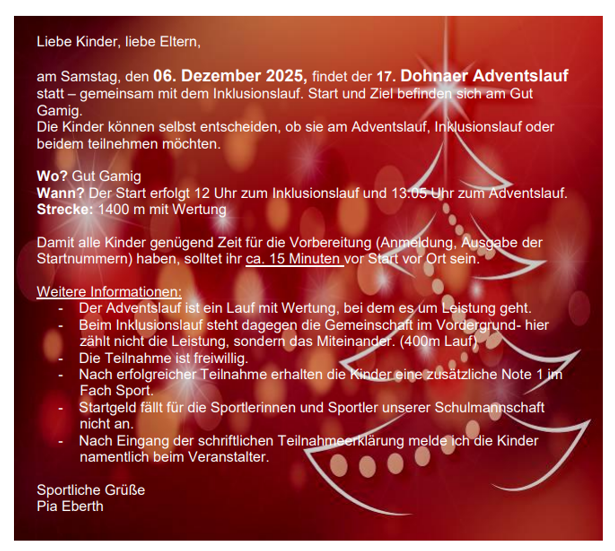 Am 06.12.2025 findet der 17. Dohnaer Adventslauf statt